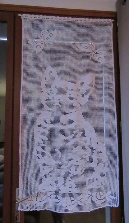 Chats Rideaux Au Crochet Filet Creation Fait Main Art Crochet Tricot Dentelle